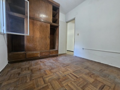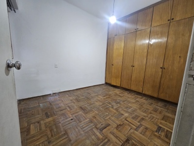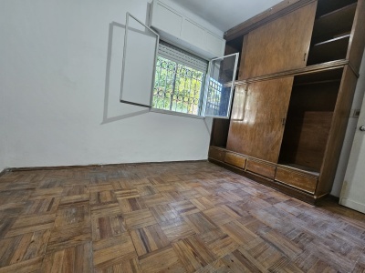 La unidad cuenta con dos dormitorios de generosas dimensiones, ambos equipados con grandes placares que maximizan el almacenamiento. Los pisos de parquet, en buen estado, añaden un toque de calidez. Uno de los dormitorios se orienta hacia el frente, mientras que el segundo disfruta de una tranquila vista al patio, asegurando un descanso placentero. El baño, de época, se encuentra en óptimas condiciones.